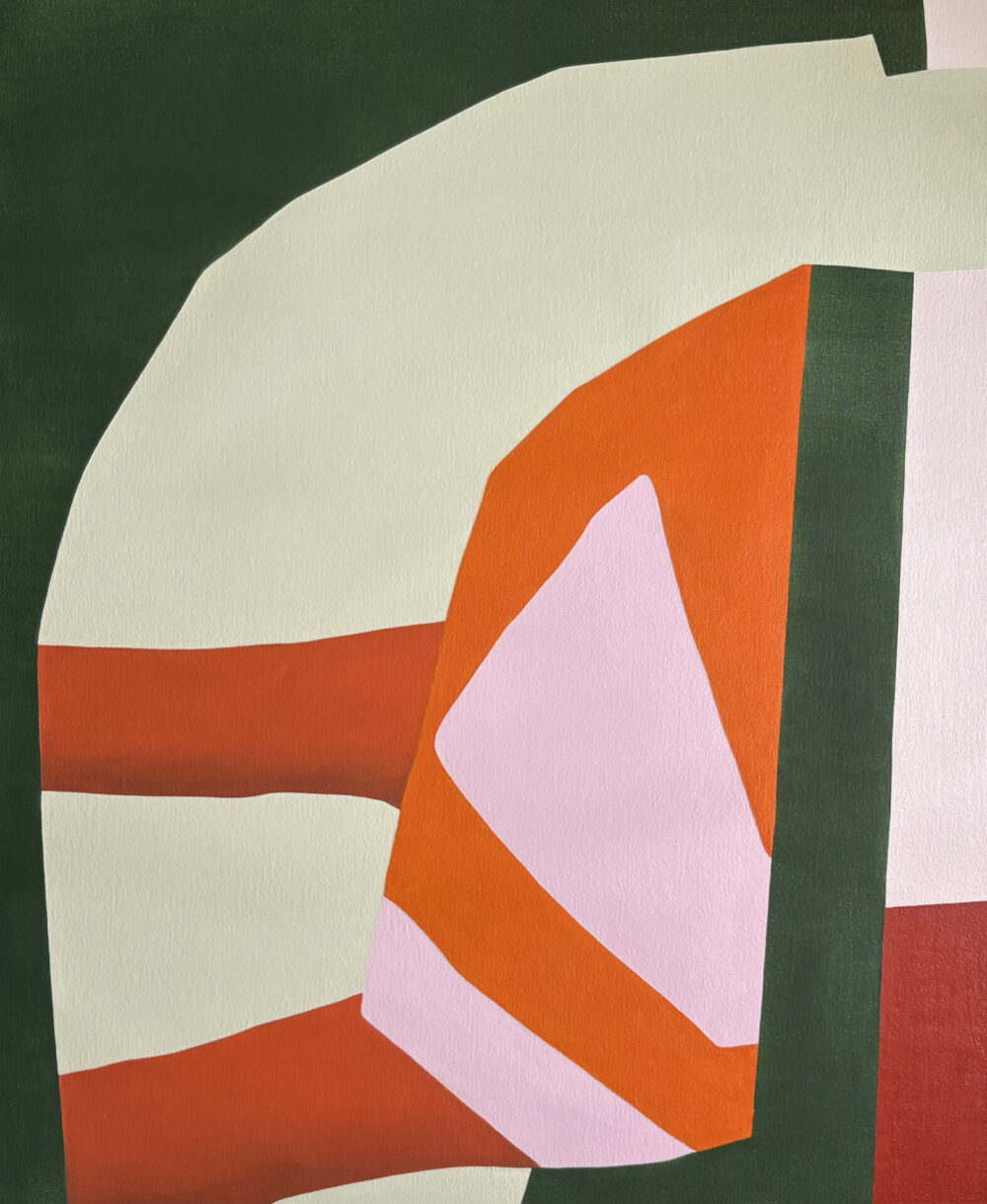 Colour is a vital component at all stages of the process, particularly at the final stage of painting and mixing of oil paints, its vibrancy made more potent by bold shapes that act as the vehicle for expression, bringing a delicate calibration of colour to the fore. Through this the artist uncovers and develops her own personal symbology. Jade’s intention with this body of work is to imply an atmosphere or a memory that invites the viewer into the space for a contemplative experience, activating their own imaginative associations when engaging with the work.