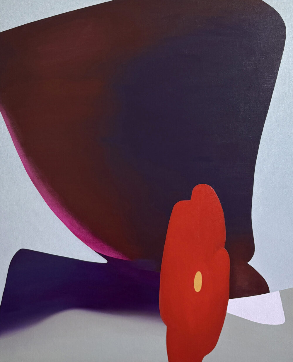 Jade Sibinovski is a Sydney artist who graduated with honours in painting from the National Art School in 2017. For Jade, form and colour are inseparable modes of expression in her work. Using a process that references the chance and deliberation of collage, the works comes to life in a rather serendipitous way. The spark created from inadvertent arrangements arising from the assembling, dissecting and overlapping of cut paper shapes and images from disparate sources, acts as a portal into the unconscious. Mining these terrains, she renders abstracted imagined worlds by manipulating and playfully contorting the materials while seeking to discover the unfamiliar and uncanny.