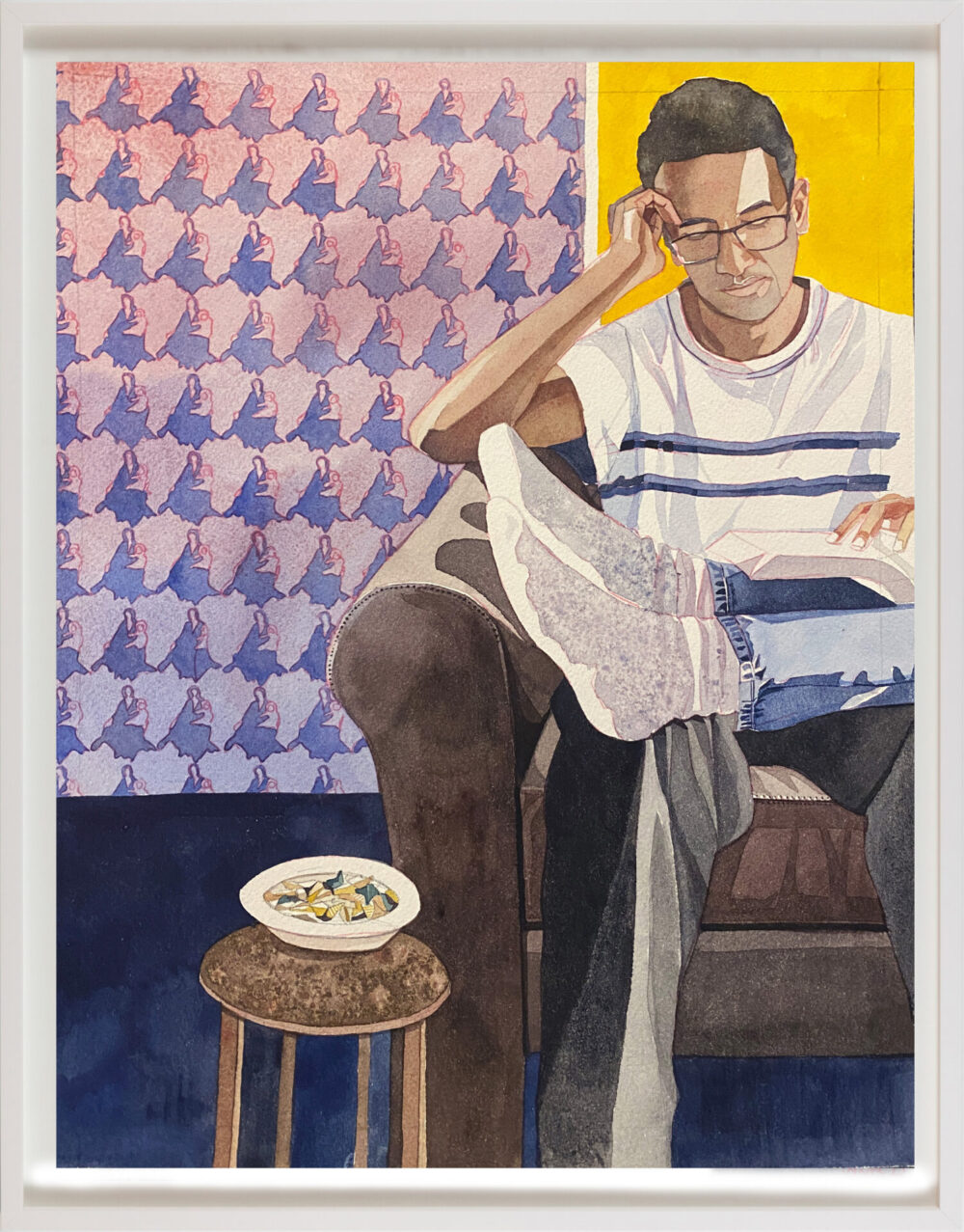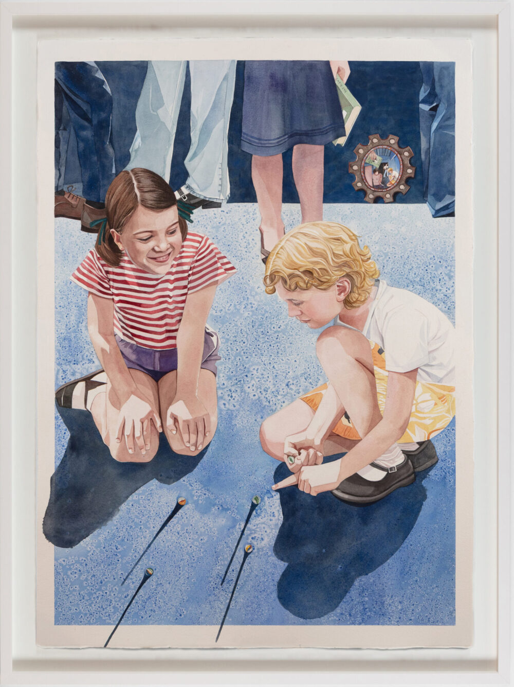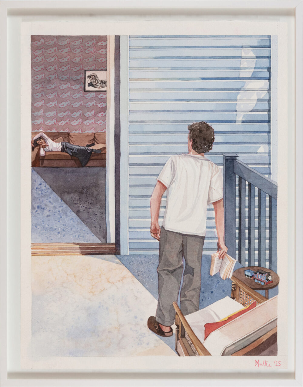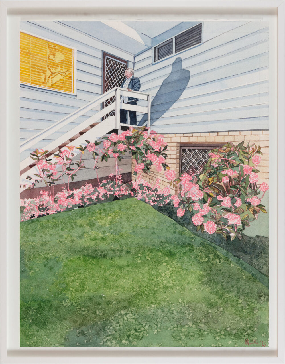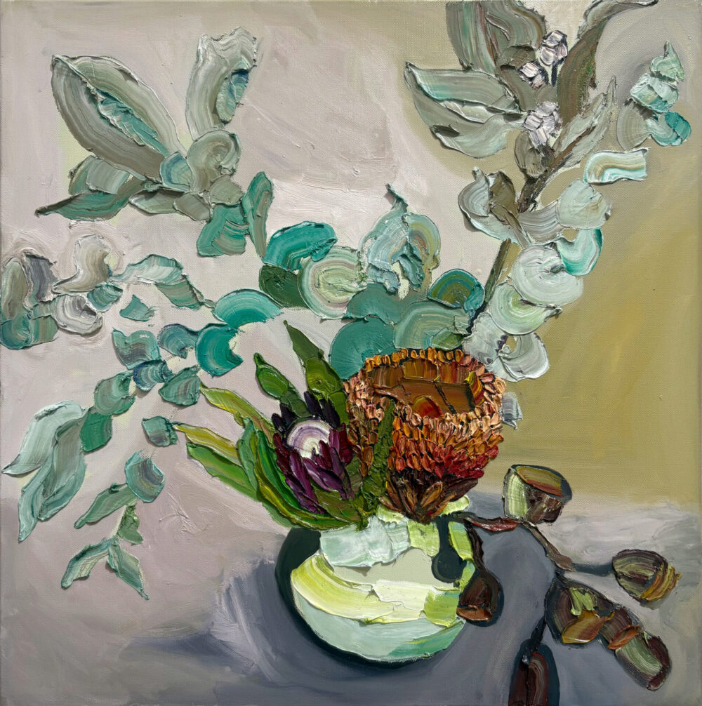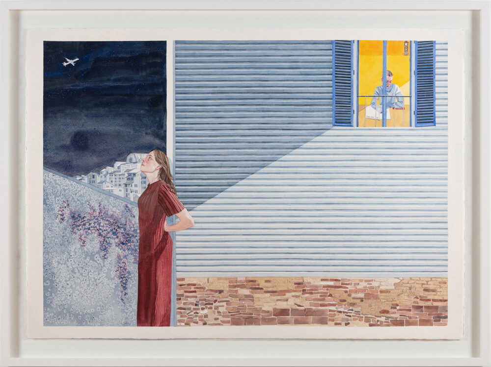 “This series explores fleeting, tender moments from suburban Australian life – children running through the sprinkler, a dad and daughter at the bowls club, a girl waiting for her paddle pool to fill,” says Raisbeck, who, in addition to her NEAP nod, has been a finalist in many other major awards, including the Naked and Nude Art Prize. “These quiet scenes, drawn from old and new photographic references, are part of an ongoing investigation into how we connect with the past and the people who shaped us.”