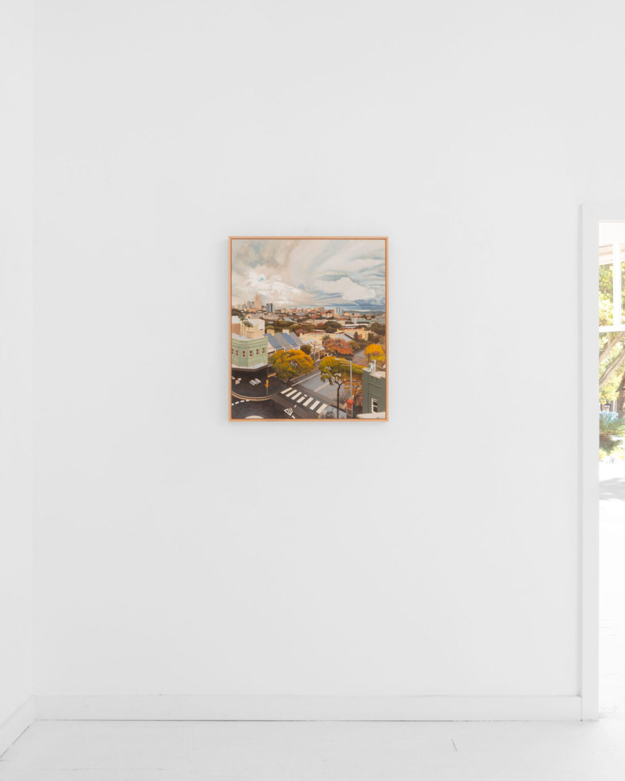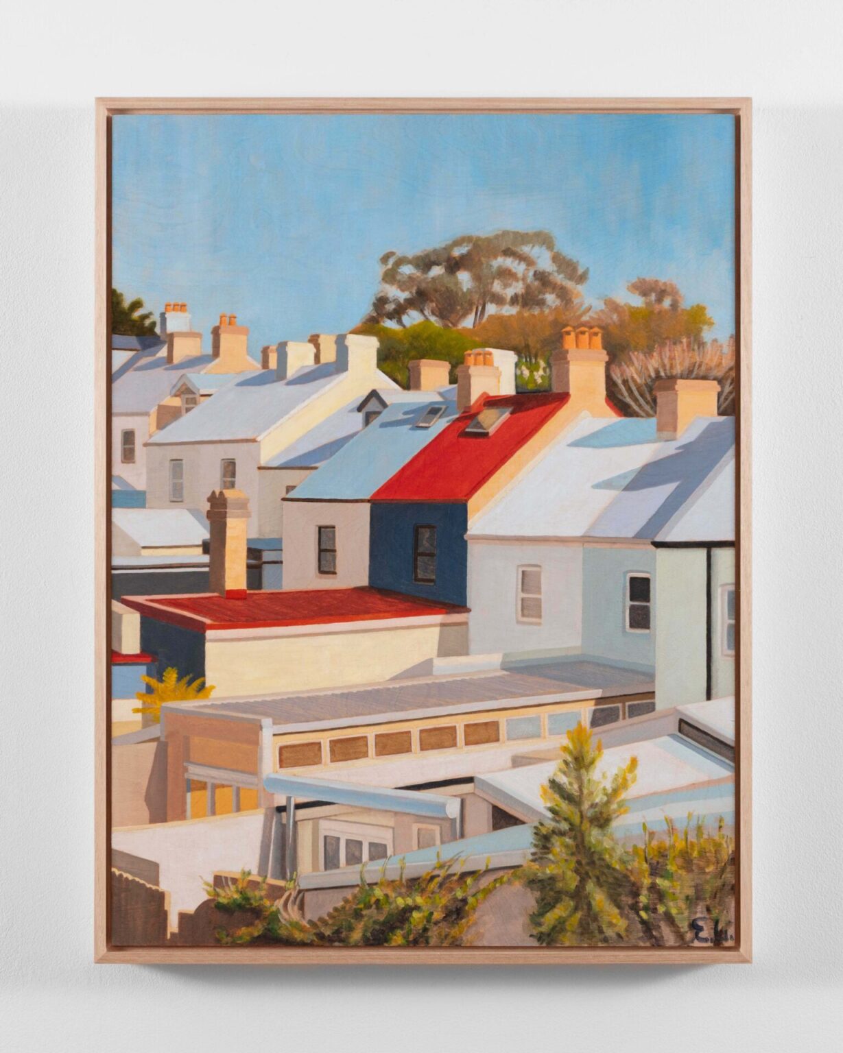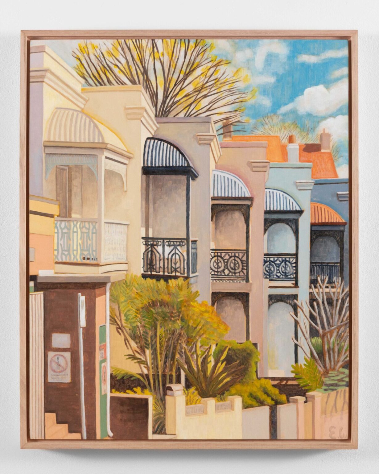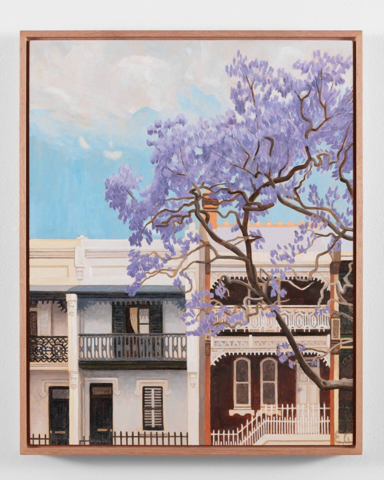 “Together we created a composition that recasts the chosen narrative scene to contemporary Australian life,” says Muston, whose series is nested with allusions to a library of texts: from Madame Bovary, Leaves of Grass and Atonement to Australian author Jessica Au’s 2022 novel Cold Enough for Snow. “I seek to show how the edges between the mediums of painting and words are not barriers, nor boundaries, but bridges.”