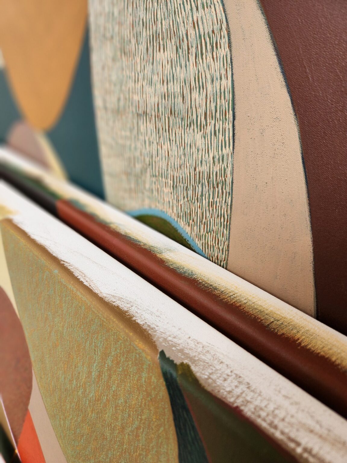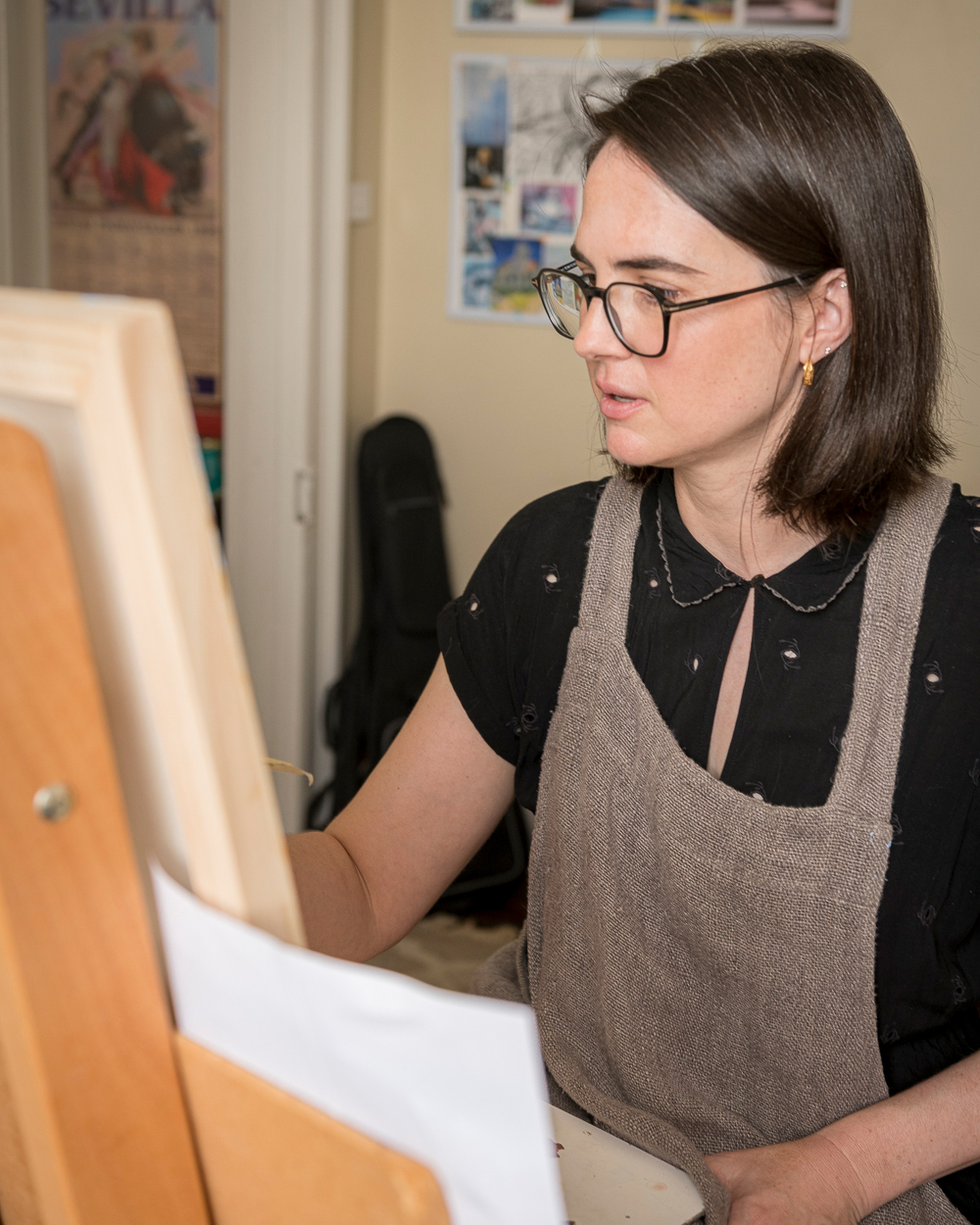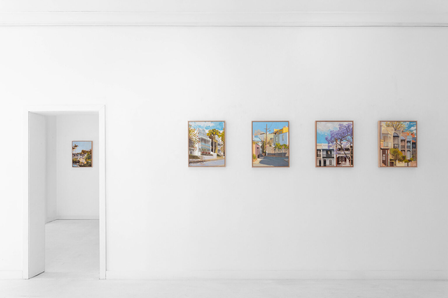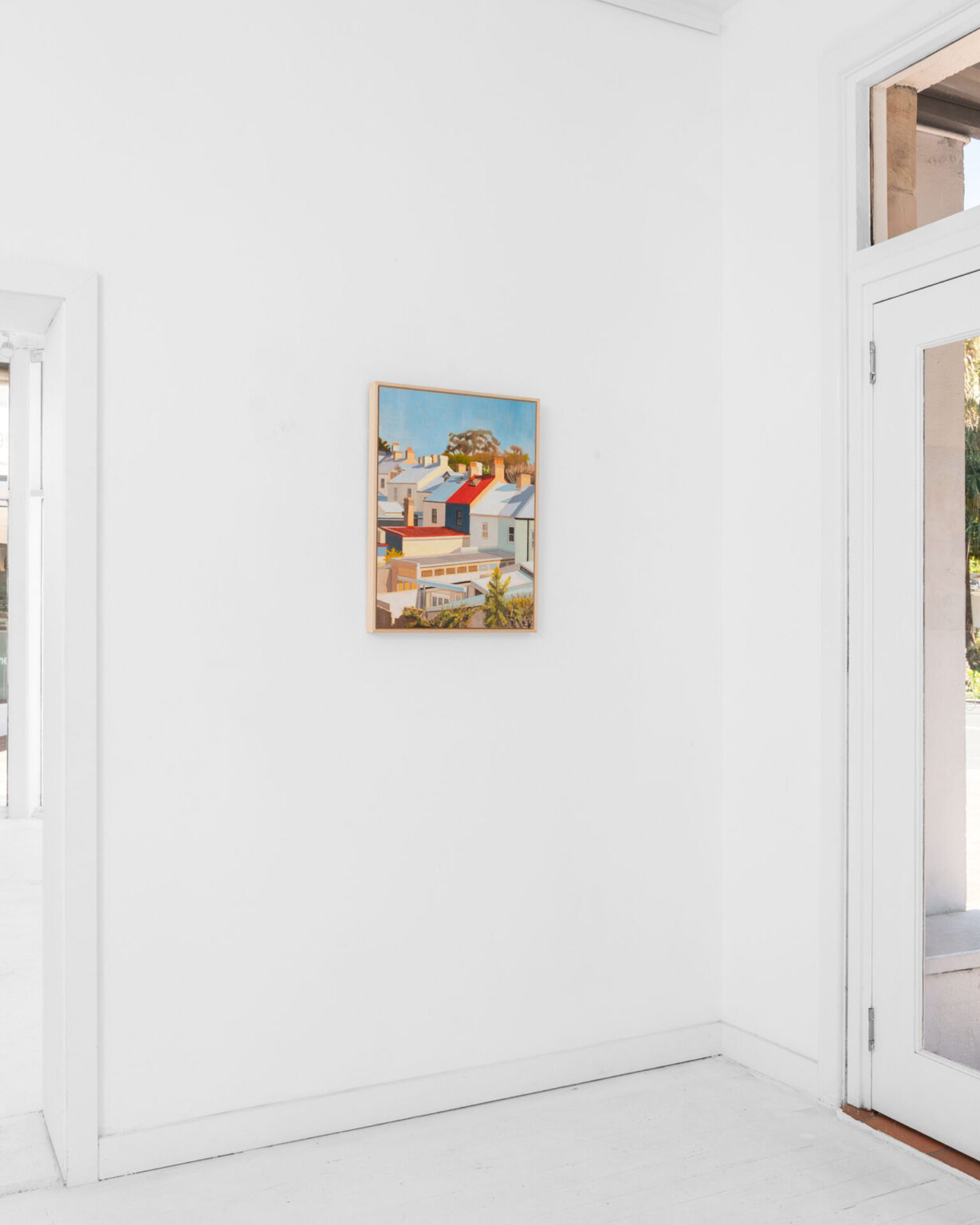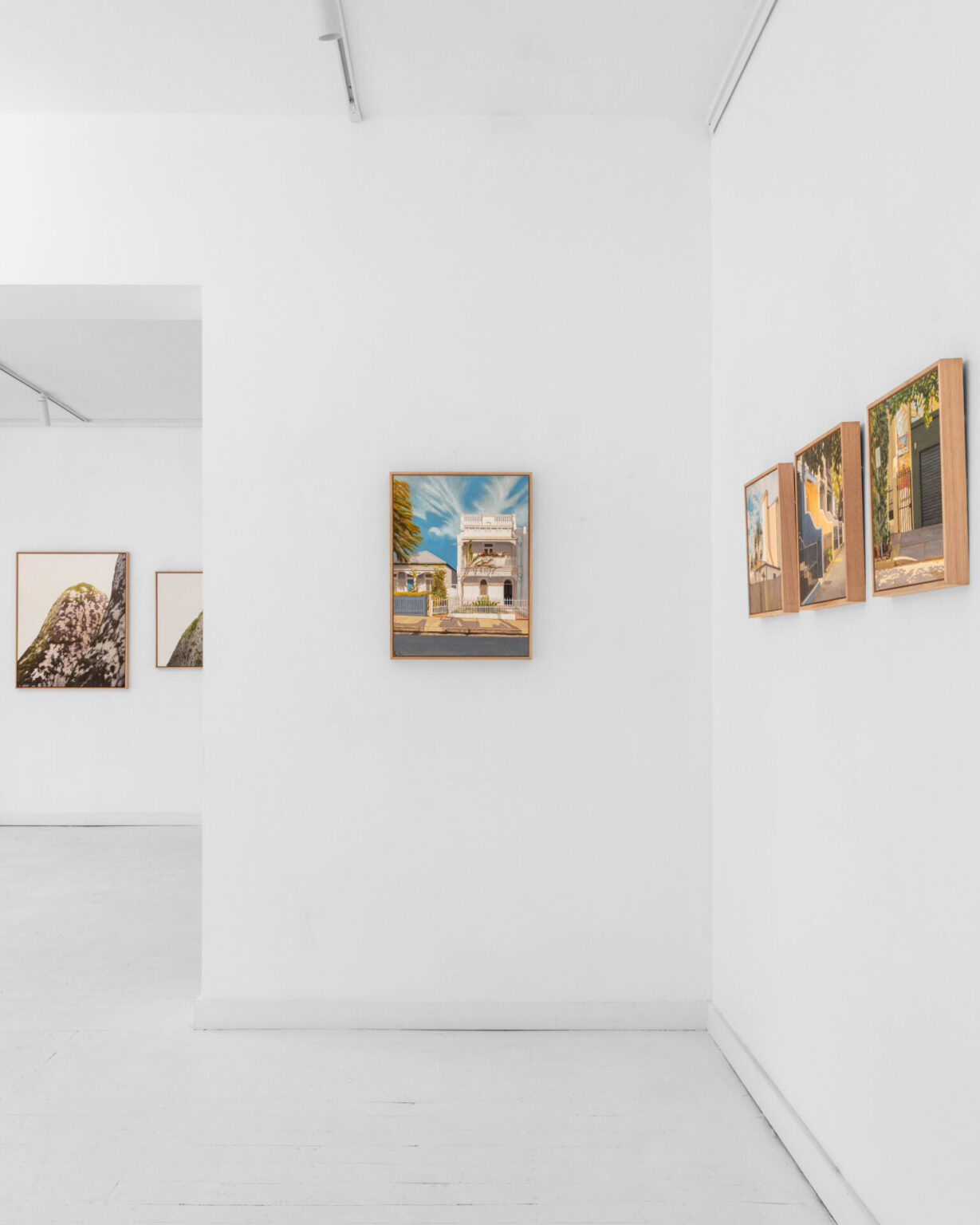 “Together we created a composition that recasts the chosen narrative scene to contemporary Australian life,” says Muston, whose series is nested with allusions to a library of texts: from Madame Bovary, Leaves of Grass and Atonement to Australian author Jessica Au’s 2022 novel Cold Enough for Snow. “I seek to show how the edges between the mediums of painting and words are not barriers, nor boundaries, but bridges.”