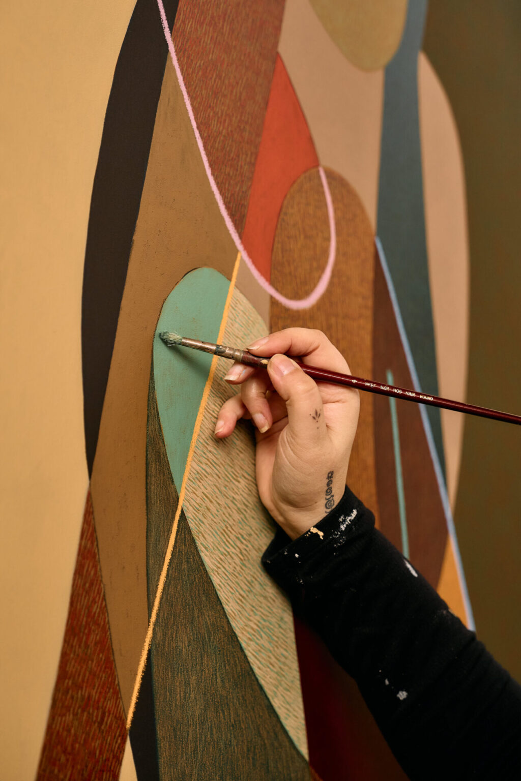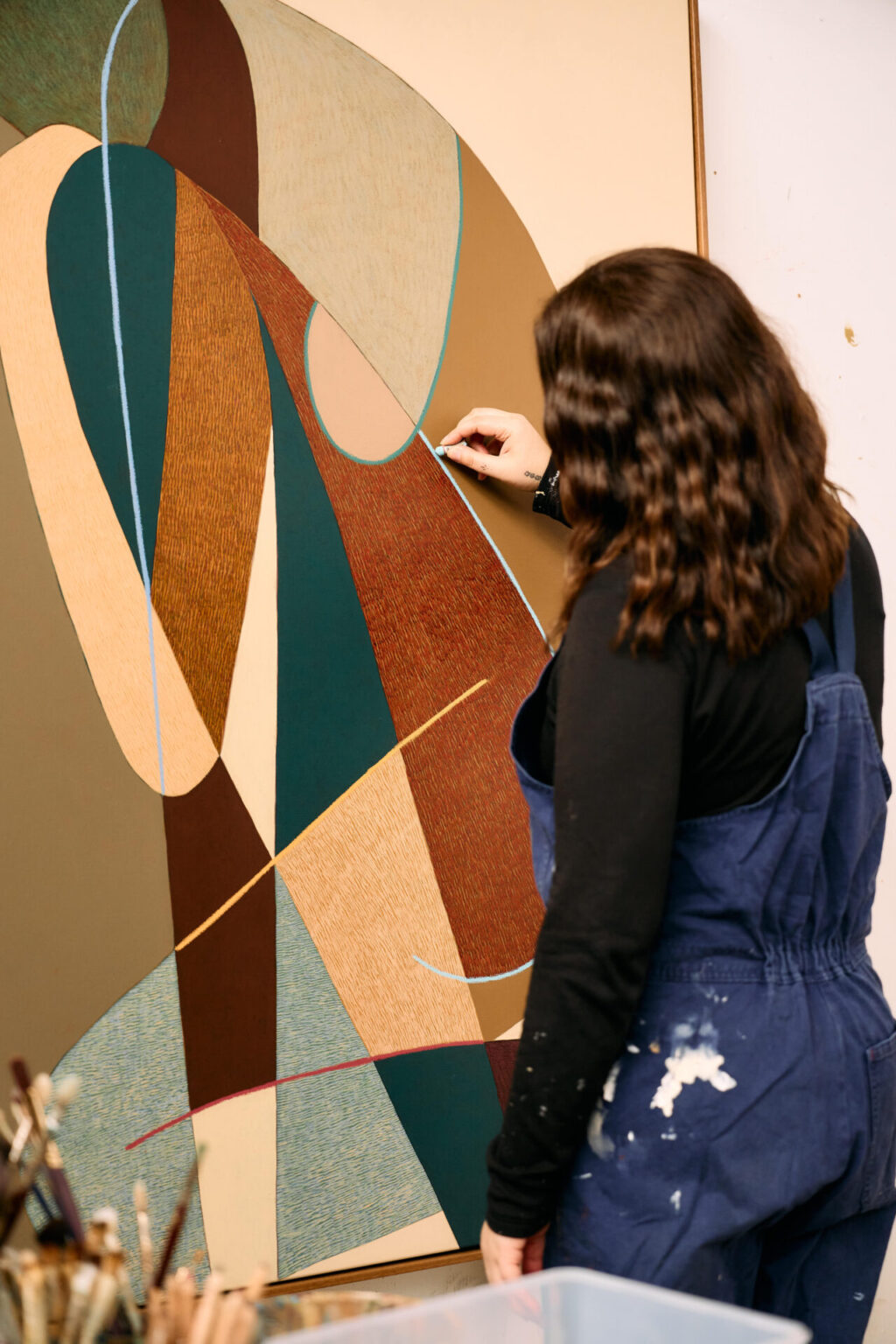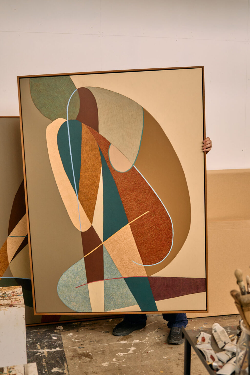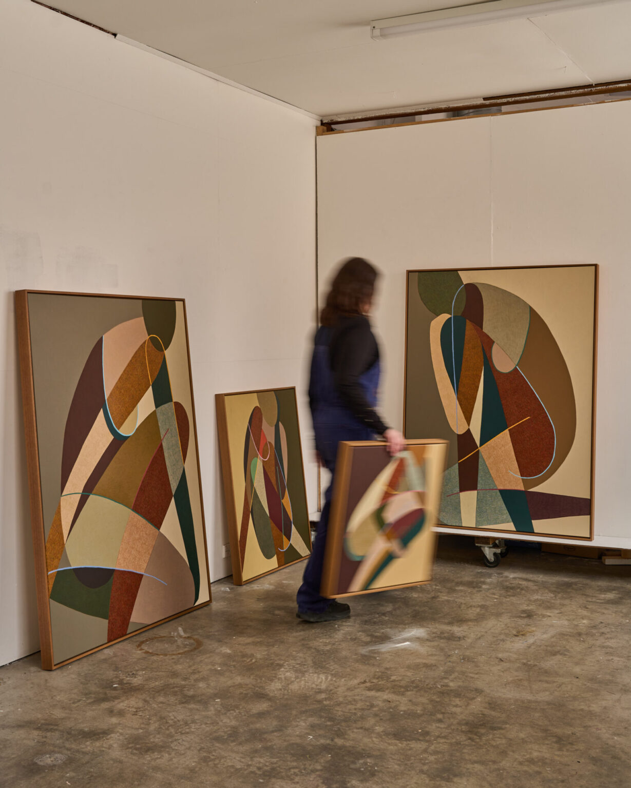 “Together we created a composition that recasts the chosen narrative scene to contemporary Australian life,” says Muston, whose series is nested with allusions to a library of texts: from Madame Bovary, Leaves of Grass and Atonement to Australian author Jessica Au’s 2022 novel Cold Enough for Snow. “I seek to show how the edges between the mediums of painting and words are not barriers, nor boundaries, but bridges.”