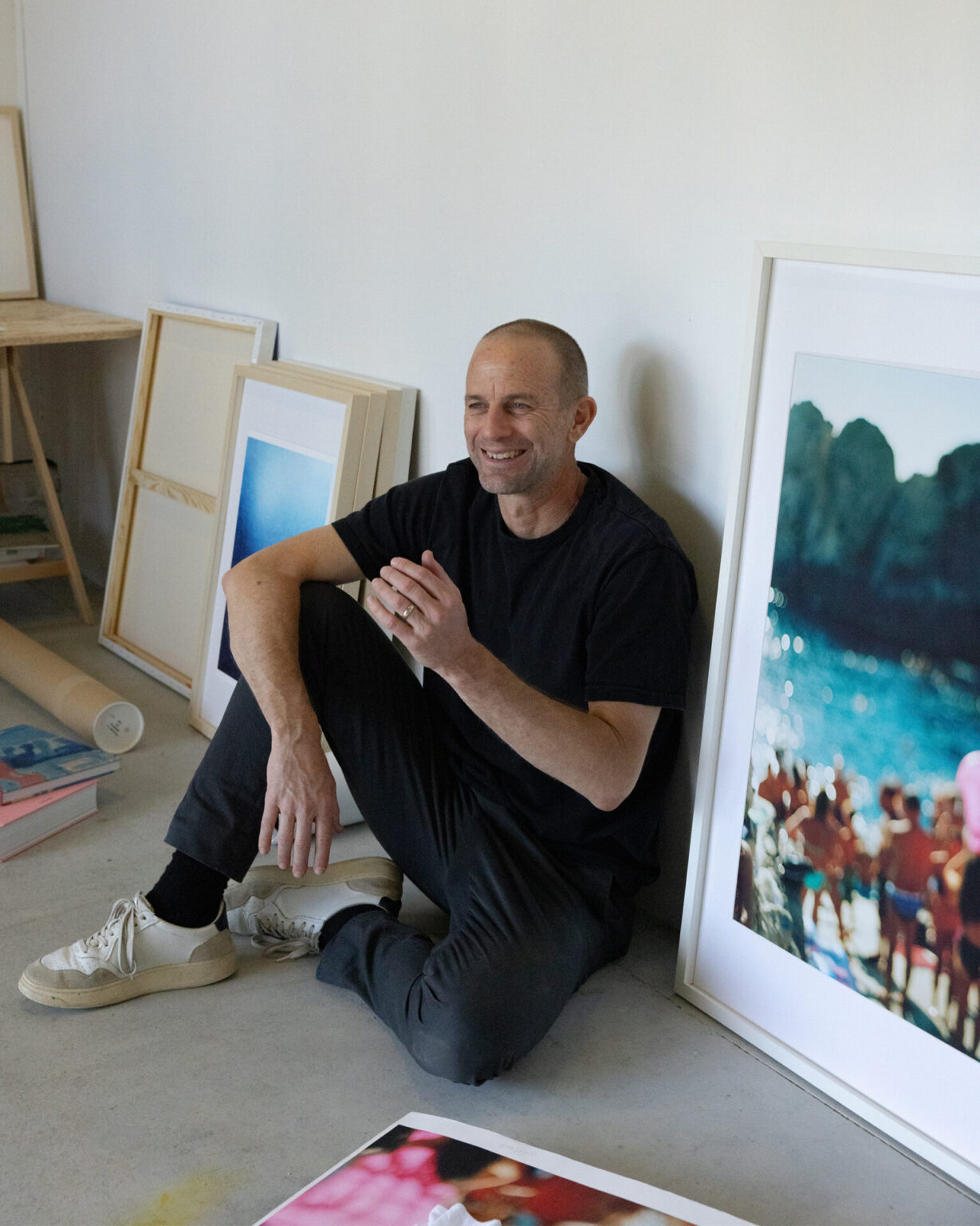A gentle nostalgia runs through Coastal Canopies, evoked by familiar shoreline details, bobbing fishing boats and motifs that feel, as Dickens notes, “universally recognisable”. “The careful placement of fishing boats and palm trees against an aquamarine ocean,” he writes, “is evidence of a language built beyond the initial scene of inspiration and created during the process of painting.”