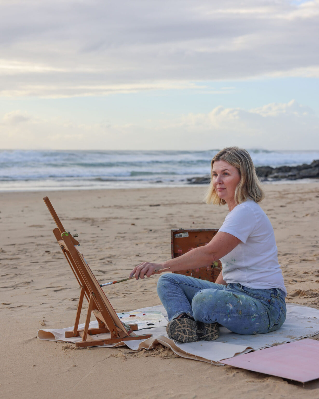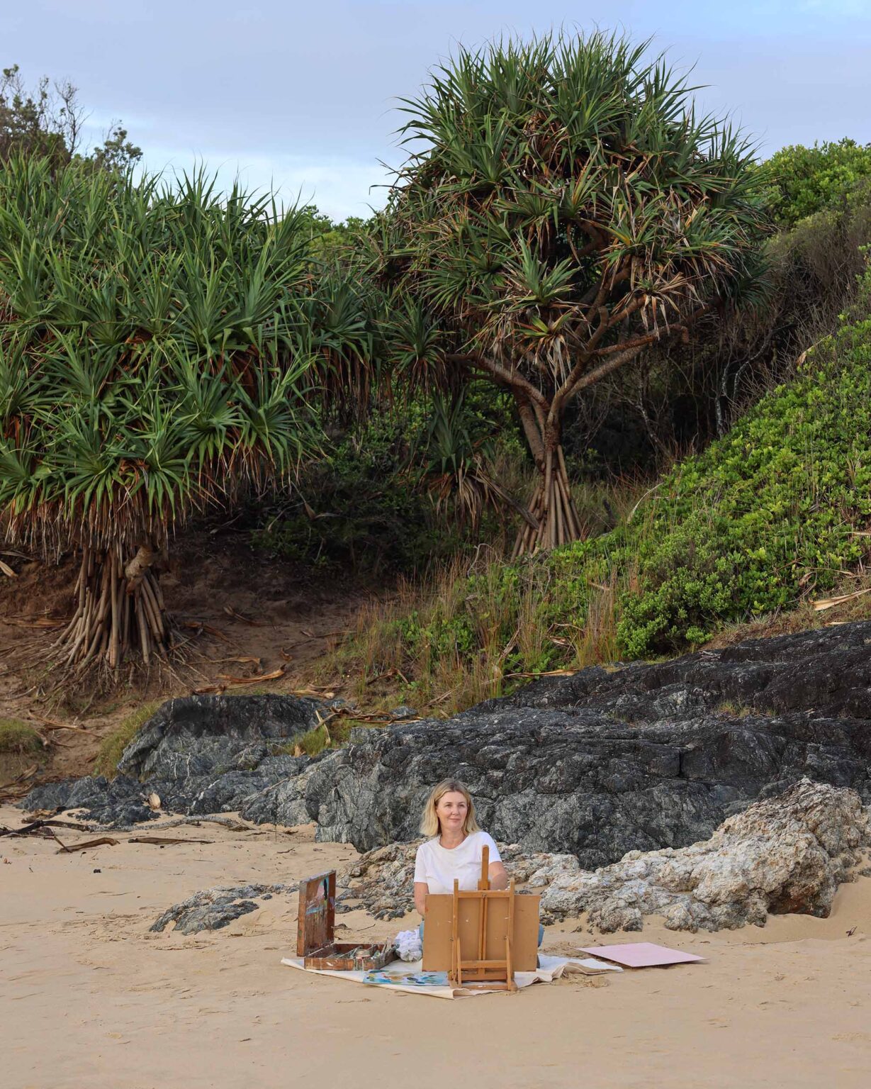 Across some of Waugh’s largest canvases yet, Coastal Canopies travels from Bangalley Headland in Avalon, just north of our Newport gallery, to the subtropical reaches of Byron Bay. Along the way, the artist pauses at places such as Arakoon, Angourie and The Basin, distilling their atmospheres into paintings that feel less like descriptive records than sensory impressions shaped by memory, movement and light. As artist Joel Dickens writes in the exhibition catalogue, “Although most of these places have been known to Mel for years, some have been stumbled upon more recently, sparking an immediate connection.”