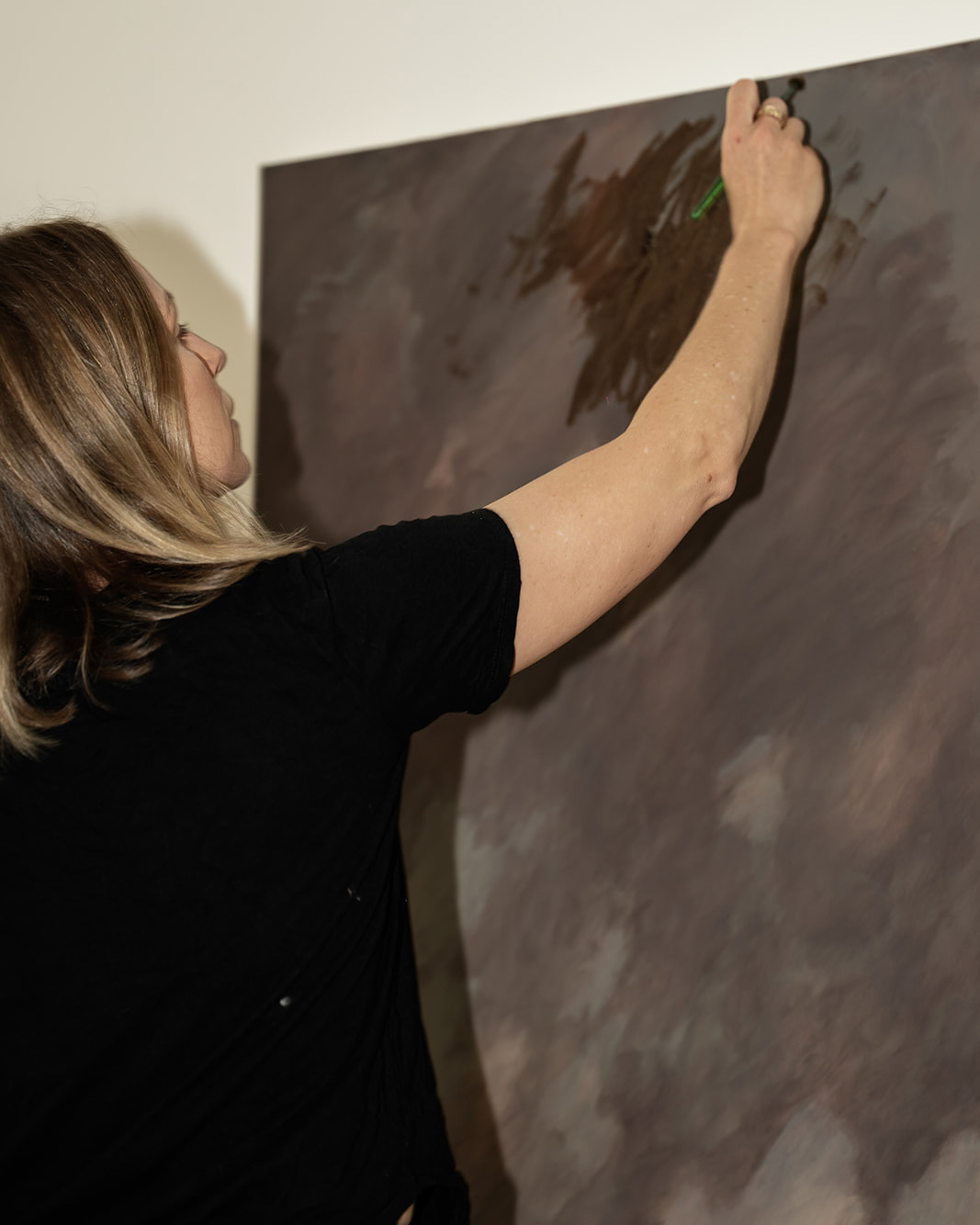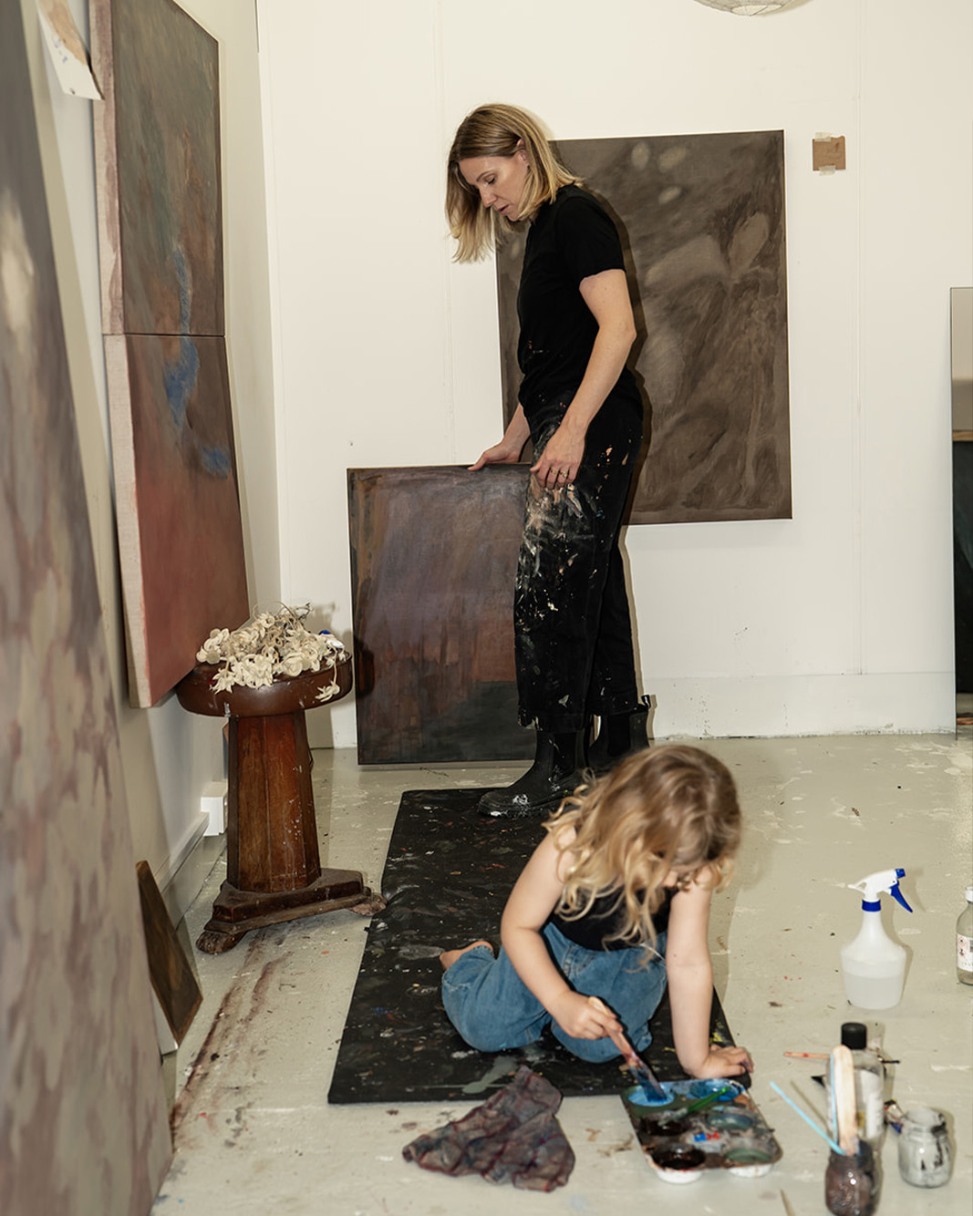 Coastal New South Wales–based abstract painter Ash Leslie joins our summer group exhibition, Quiet Tide, with a suite of works shaped by quiet intervals, intuitive gesture and the atmospheres of the shoreline she calls home. After nearly a decade in graphic design, Leslie rediscovered painting during maternity leave with her first daughter, developing a practice forged in the margins of the day – rigorous, intimate and unmistakably her own. “Working intuitively, I lose myself in translucent washes of oil paint, allowing my subconscious to guide me,” she says. “As the impression emerges, I let the piece rest somewhere between recognition and obscurity.”