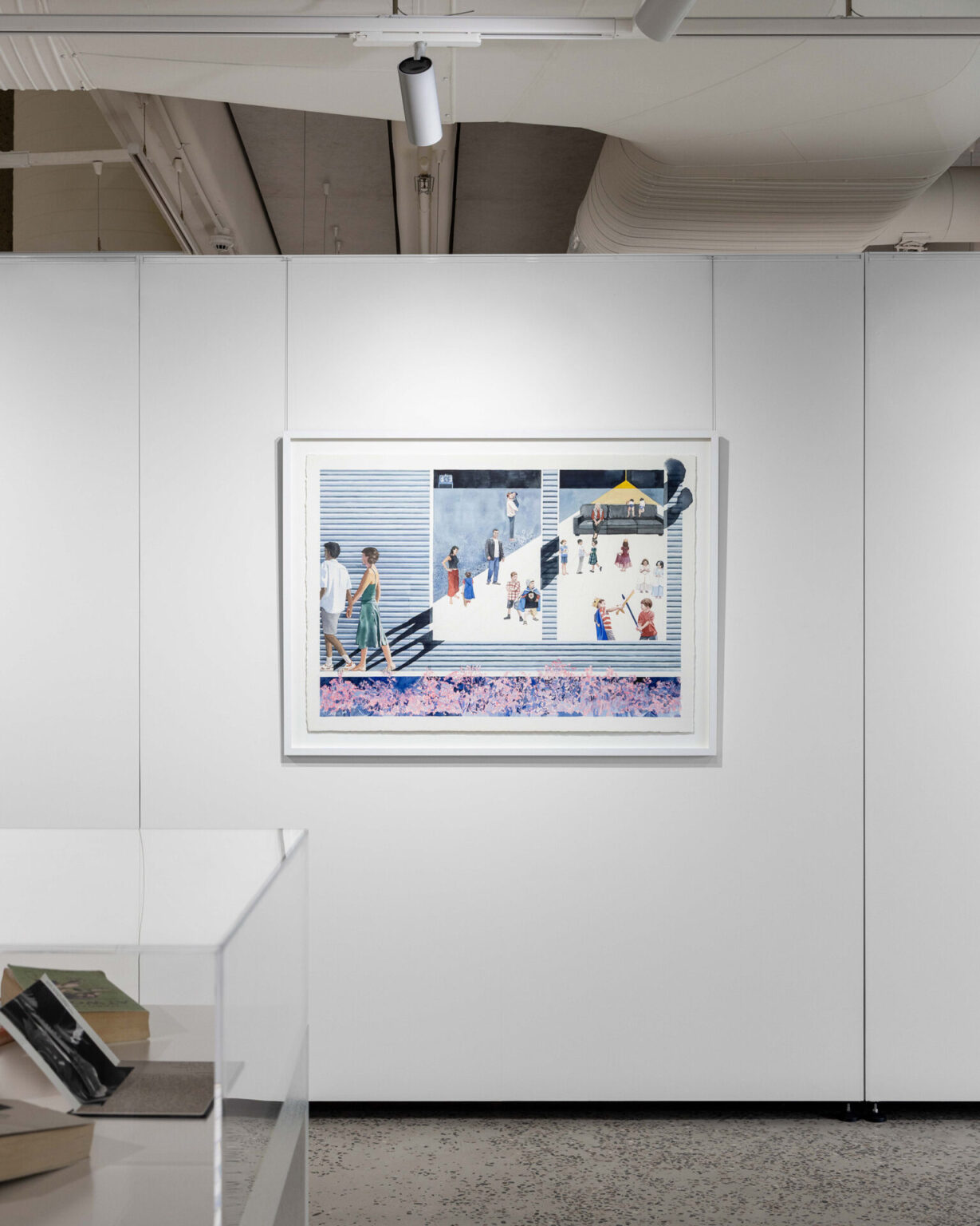 “Together we created a composition that recasts the chosen narrative scene to contemporary Australian life,” says Muston, whose series is nested with allusions to a library of texts: from Madame Bovary, Leaves of Grass and Atonement to Australian author Jessica Au’s 2022 novel Cold Enough for Snow. “I seek to show how the edges between the mediums of painting and words are not barriers, nor boundaries, but bridges.”