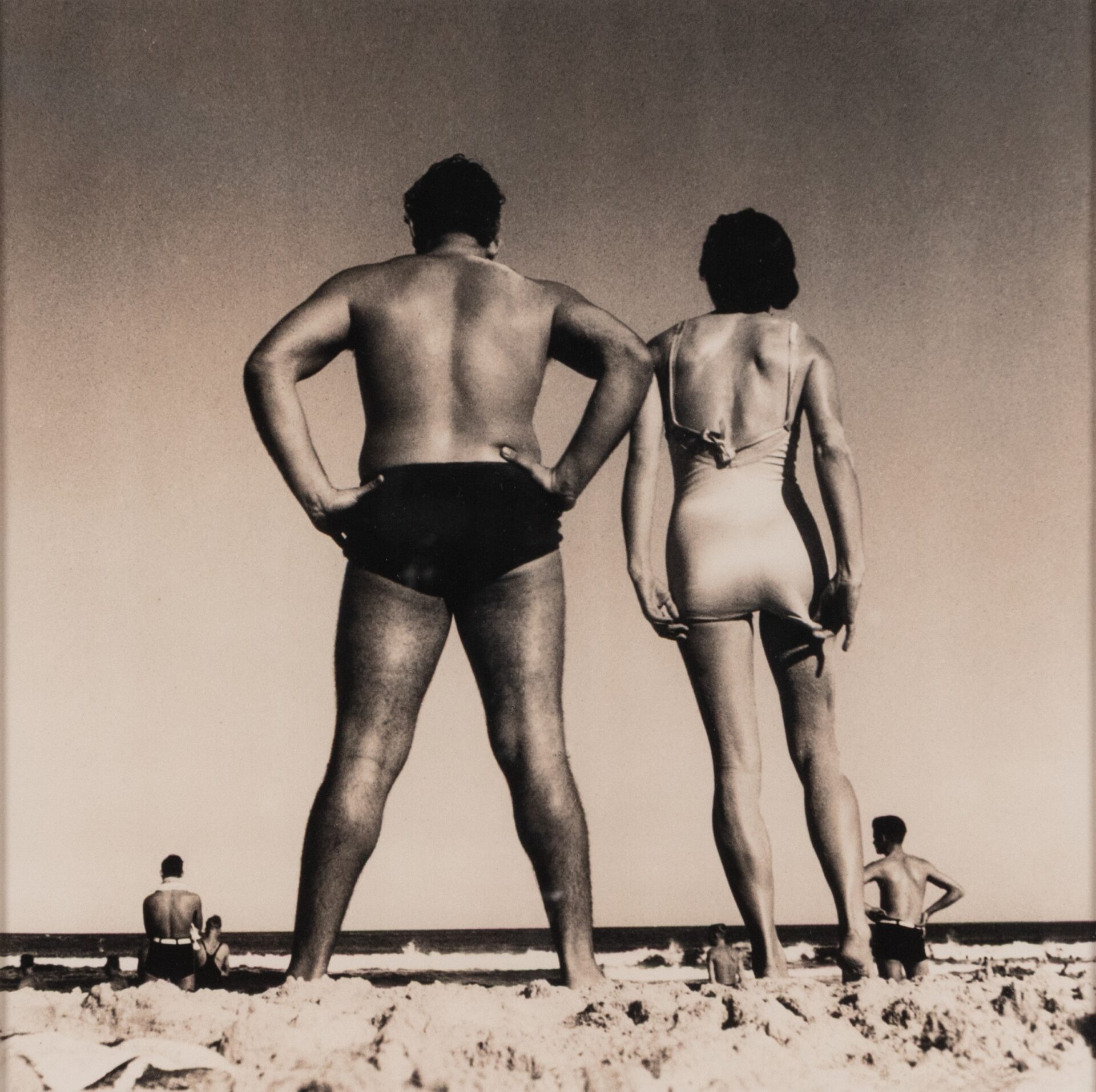 Together with Sunbaker (1937), at Bondi reflects a pivotal shift in Dupain’s practice —from private snapshot to public icon, from modernist experimentation to a deliberate documentation of Australian life. This photograph exemplifies Dupain’s interest in the human form, both as a symbol of national identity and as an exploration of abstract form.