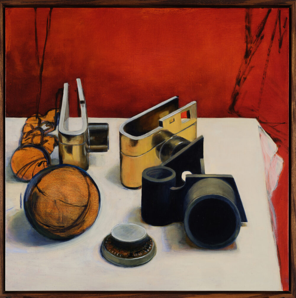Still Life, with Spectacles, Hyper-Dimensional cube, Sketchy Spinning top and Camera- Phone sculpture by artist Ceri Hann